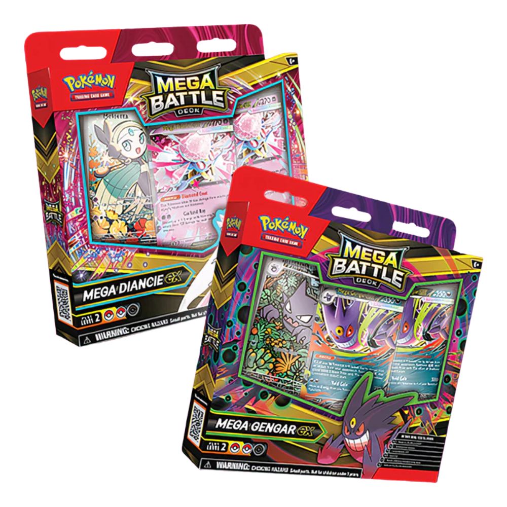 Two new Pokémon TCG: Mega Battle Decks are ready to rumble! Team up with Mega Gengar ex and battle from the shadows, or call upon Mega Diancie ex and dazzle opponents with your skill. Each deck includes a powerful Pokémon ex and everything you need to play right away.